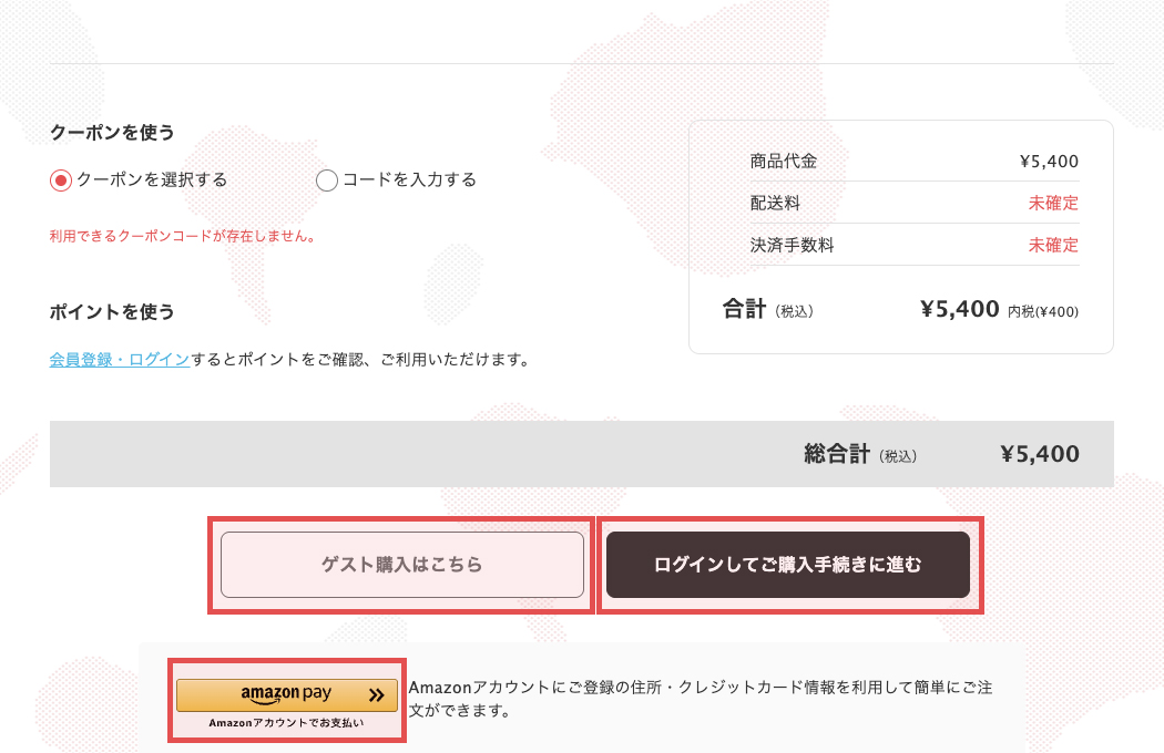 「支払い方法選択に進む」をクリックすると[お支払い方法の選択ページ]が開きます。
