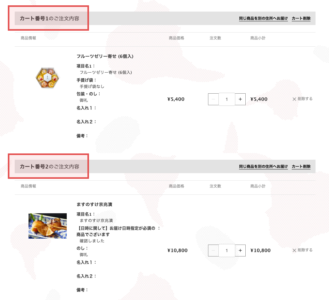 カートが複数ある場合は、各お届け先を入力・設定ください。
